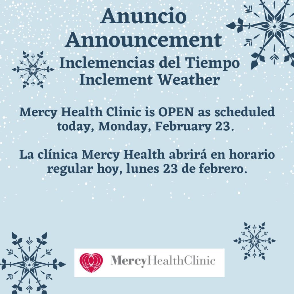 Medical visits are by appointment only. Call 240-773-0300 or email appointments@mercyhealthclinic.org